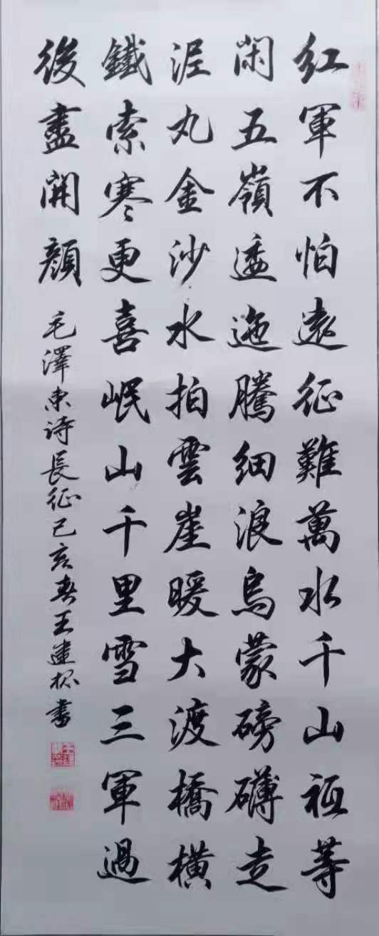 没有深厚的楷书功底,行草便会给人予飘浮之感,观王老师的行书,你会发现其沉稳中有有“清风出袖,明月入怀”之美,行书方面有的作品用“飘若浮云,变化无穷”之美来形容也是不为过的。所有这些都足见冰冻三尺非一日之寒。正所谓任何成就的成功取得,无不是用心血和汗水浇灌出来的。